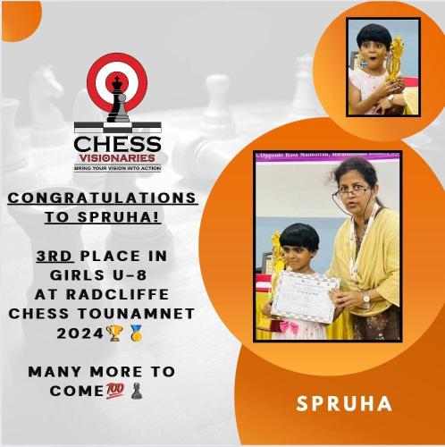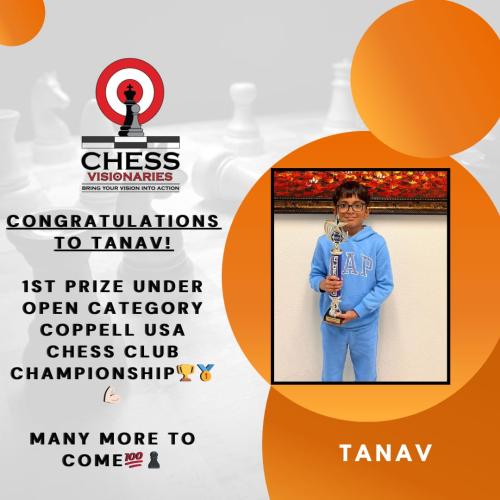 Student Achievementsvedant_joshiJuly 8, 2023 Mayuresh Mugdha Pulkit Paarth Rishabhh Shivansh Soham Spruha Tanav Balaji Tanav won 1st place in 7th Annual Queen City chess tournament in Reserve section Akhil « ‹ of 9 › »