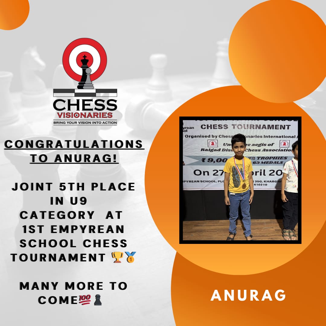 Gallery Discover the World of Chess Visionaries: A Gallery of Passion, Skill, and Triumphs! Tanav Raksh Ojas Samayra Spruha Tanush Shrihaan Arnav Avyansh Avyansh Mihaan Shivansh Adeera Ojas Jaivardhan Shrihaan Arnav Vihaan Rishhabh Sumedh Reyansh Akshaj Akshaj Avyansh Samayra Anurag Ojas Aarushi Shriyaan Tanmaya « ‹ of 8 › » « ‹ of 8 › »