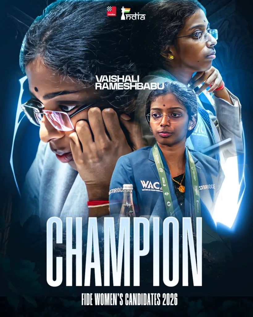 In a stunning display of resilience, preparation, and elite-level execution, Vaishali has won the 2026 FIDE Women’s Candidates Tournament, earning the right to challenge reigning World Champion Ju Wenjun for the Women’s World Chess Championship later this year.
